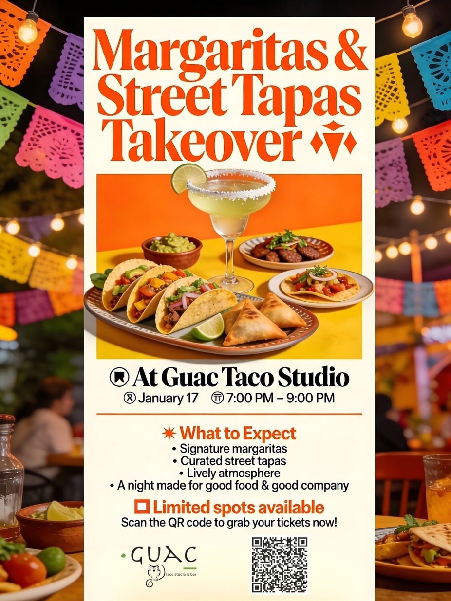 Welcome to Margaritas & Street Tapas Takeover! Join us at Guac Taco Studio & Bar on Stone Mountain Highway in Stone Mountain, GA, USA for a night of delicious margaritas and mouthwatering street tapas by Chef Rouge. Sip on refreshing margaritas while indulging in a variety of flavorful tapas inspired by street food from around the world. Get ready for a culinary experience like no other! Don't miss out on this tasty event - mark your calendars now!